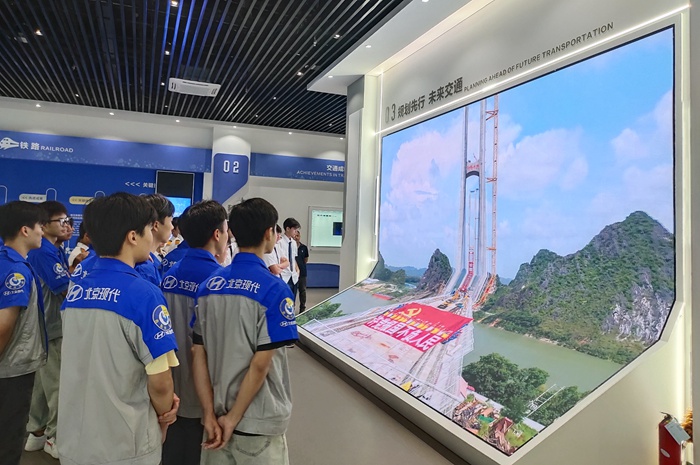 我院師生在(zài)現(xiàn)場工作人(rén)員的帶領和細心講解下,參觀了科普基地展廳內鐵路、公(gōng)路、水運(yùn)、郵政和航空等展區,認(rèn)識廣西區內具有(yǒu)鮮明特色的高速鐵路、高等級公(gōng)路、大跨徑橋梁、特長隧道(dào)、大型航運樞紐、內河水運、港口碼頭工程、民用航(háng)空和數字交(jiāo)通的建設發展成果,了解其關鍵技術的源流演變、未來趨勢(shì)和全區綜合交通運輸體係的基本情況。