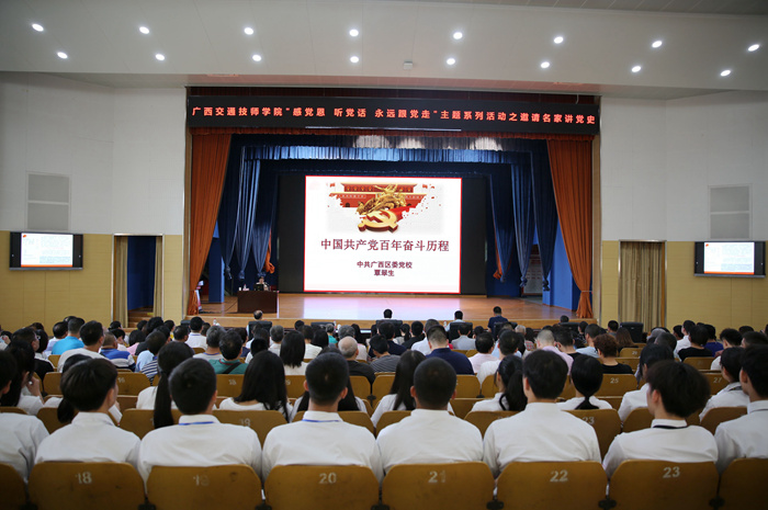 根據學院黨史學習教育實施方案的工作部署和要求,2021年5月12日下午,學院在邕武校區(qū)禮堂舉辦“感黨恩 聽黨話 永(yǒng)遠跟黨走”主題係列(liè)活動之邀請(qǐng)名家講黨史專題黨(dǎng)課,廣西自治區黨校黨史(shǐ)黨建教研部正高級教(jiāo)授覃翠生蒞臨現場授課(kè),學院領導班子、黨員、入黨(dǎng)積極分子和優秀青年學生團員代表約180人參加,黨課由(yóu)學院黨委書(shū)記鍾修仁同誌主持。