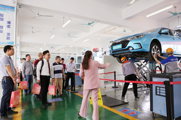 李宣葙技能大師組(zǔ)織企業專家(jiā)參觀(guān)新能源(yuán)汽車專(zhuān)業實訓室
