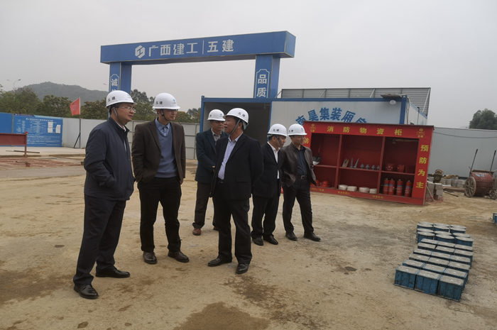自治區交(jiāo)通運(yùn)輸廳黨組成員歐陽斌(右一)調研我院伊嶺岩校區(qū)學生公寓建設(shè)情況