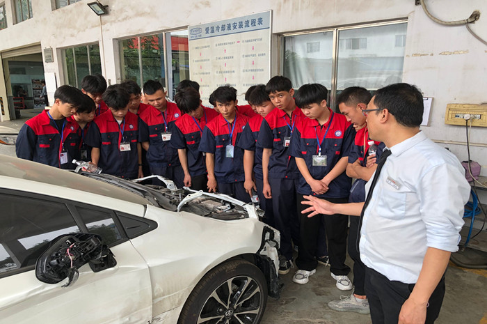 企業負責人向學生詳細介紹(shào)汽車構造