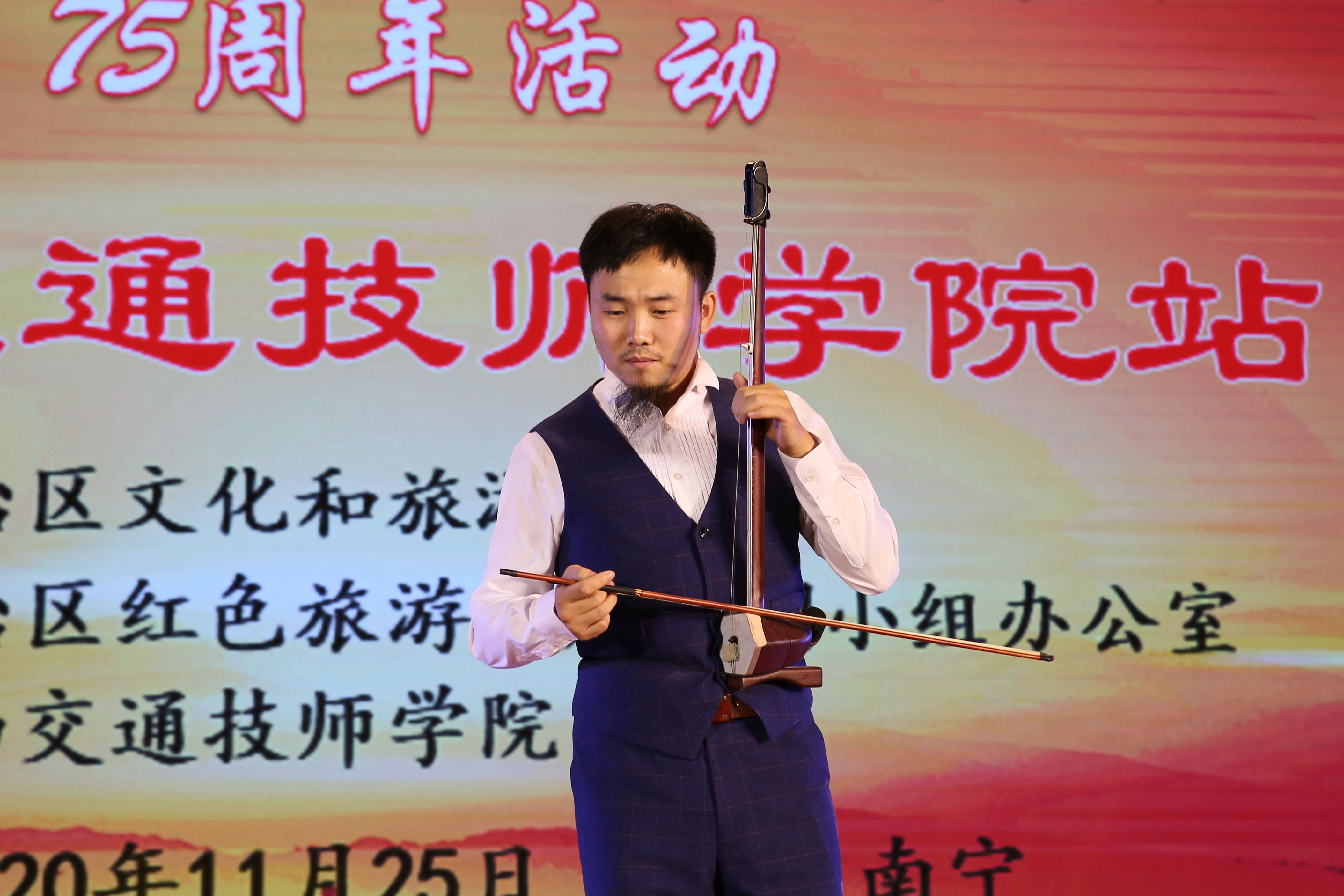 本次教育活動內容包括紅色故事宣(xuān)講、紅(hóng)色歌曲傳唱、京(jīng)劇、樂器表(biǎo)演(yǎn)等形式(shì)。其中,在紅色故事宣講節目中,講述了無數革命誌士(shì)為追求中華民族獨立而勇於奮鬥犧牲的故事(shì),內容深情真切,感(gǎn)染了現場觀眾,讓在場觀眾無不動容(róng)。一首首紅(hóng)色歌曲,一(yī)段段(duàn)感人故(gù)事,一個個生動場景給師生(shēng)們留下了深刻印象,讓廣大師生在接受紅色文化(huà)熏(xūn)陶中進一步感受廣西紅色文化的豐(fēng)富內涵。