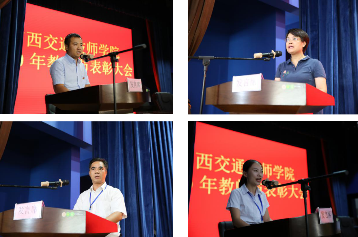 優秀教師代表謝毅鬆(sōng)、陸向華、方世仁(rén)、王賽君四名同誌上台發言,他們分別從《舍小(xiǎo)家,顧大家,愛國家——新冠疫情防控工作匯報》、《責任與使命並(bìng)行-招生工作有感》、《逐夢世賽,永遠在路上…》、《做班主任不僅要有力度,更要有溫度》分享了各(gè)自的先(xiān)進事跡、工作經驗、責任和擔當。幾位優秀代(dài)表(biǎo)的(de)發言(yán)慷慨激昂,鼓舞人心,同時也向全體師(shī)生(shēng)發出了(le)號召——為學院高質量發展開拓進取、砥(dǐ)礪前行!