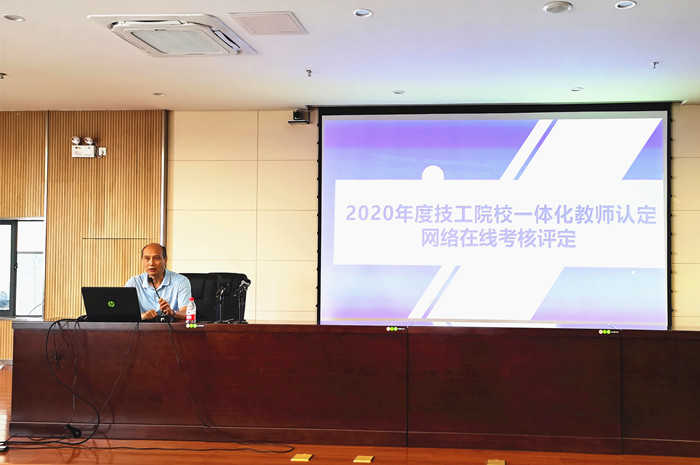 本次培訓由關菲明副院長,教師發展中心(籌)負責人鄭超文為大家詳細解讀了《廣西壯族自治(zhì)區技工教育研究室關於做好2020年度(dù)技工院校一體化教師認定(dìng)網絡在線考核評定工作的通知》文件精(jīng)神,並為(wéi)大家答疑解惑。