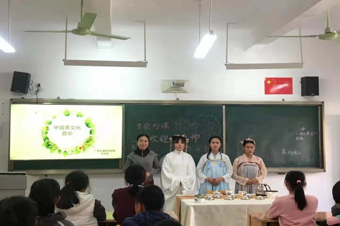 韋欣烜老師帶領茶藝社成員到廣西大學君武(wǔ)小學(xué)開展茶藝交流活動
