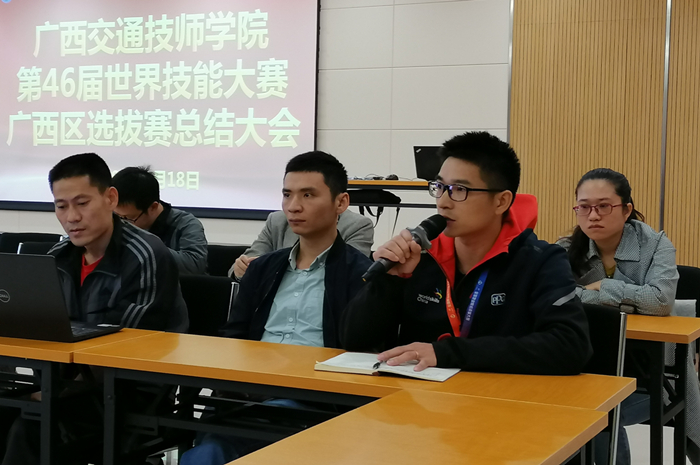 關菲明副院長簡明扼要地總(zǒng)結了世賽班組建以來開(kāi)展(zhǎn)各項活動的經驗,同時,我院參加第46屆世界技能大賽廣西區選拔賽的教練和選手總結(jié)此次(cì)比(bǐ)賽的經驗,並提出下(xià)一步開展工作的思路方針。
