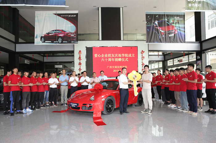 為慶祝學院成立60周年,表達(dá)對母校的感恩之情,愛心企業校(xiào)友為我院捐贈保時捷Cayman一台,用於汽車專業教學實訓。7月30日上午,學院(yuàn)在汽(qì)車4S實訓中心舉行了捐贈儀式(shì),部分院領導(dǎo)與汽車係師生參(cān)加了儀式。