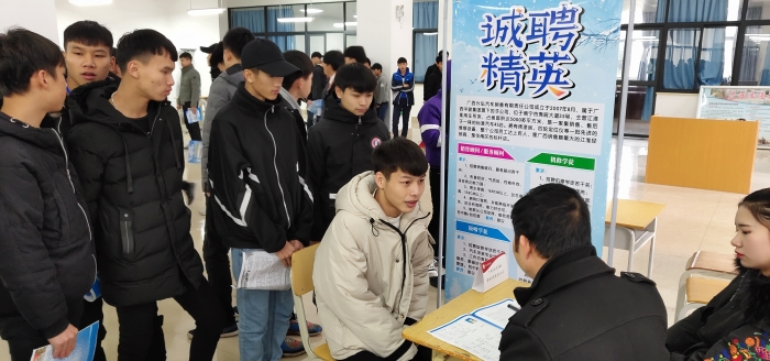 為推進畢業生實習就業工作,貫徹落實廣西壯族自治區人力資源和社會保障廳《關於做好(hǎo)技工院校學生實習管(guǎn)理工作的通知》的要求,1月9日下午,我院2019屆畢業生就業雙選會在綜合樓二樓大廳(tīng)舉行,吹響了我院春季學期實習就業工作號角。