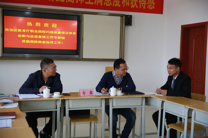 自治區教育廳職業(yè)院校內部質(zhì)量保證體係診斷與改進複核(hé)工作專(zhuān)家組到(dào)我院檢查指導