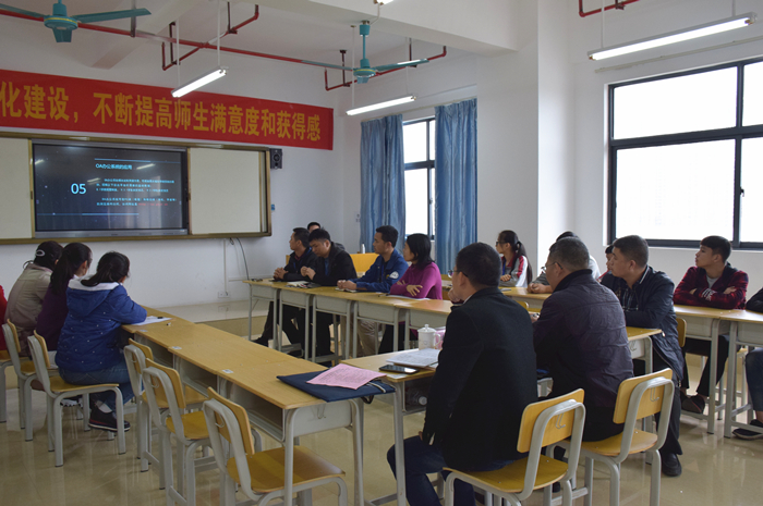 匯報會在綜合樓16樓會議室舉行,全體專家組成員、我院領導班(bān)子、相關部門和係部負責人等參(cān)加(jiā)了會議(yì)。學院院長(zhǎng)鍾修仁首先代表全院向(xiàng)專家組(zǔ)的到來表(biǎo)示熱烈歡迎。鍾院長從“成立機構,做好(hǎo)頂層設計”、“研讀文件,出台工作方案”、“培訓學習,領(lǐng)會診改精神”、“理順思路,打造校本特色”、“持續改(gǎi)進,收獲(huò)豐碩成果”以及“存在問(wèn)題和(hé)改進措施”等6個方麵進行匯報。他表示,希望專家組進一步幫助我院完善內部質量保證體係的(de)常態化機製,推動人才培養工作再上新台階。