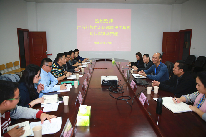 11月(yuè)30日下午,廣西(xī)郵電技工學校校長助理廖正軍一行9人(rén)到我院參觀(guān)交流。我院關菲明副院長以及相關部門負(fù)責人熱情接待(dài)了(le)來訪人員。
