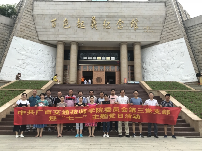 為進一步加強理想(xiǎng)信念和愛(ài)國主義教育,慶祝建黨97周年,我院第三黨支部(bù)於(yú)2018年7月2日赴中國工農紅軍第七軍軍部(bù)舊址(zhǐ)、百色起義紀念碑、百色(sè)起義紀館等愛國主(zhǔ)義教育(yù)基地參觀學習。