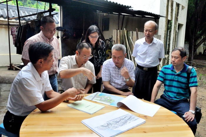 自治區交(jiāo)通運輸廳黨組書記、廳長陳鴻起(右三)在定羅新校區工地聽取校區規劃建設匯報