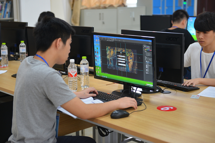 我院參加《3D數字遊戲藝術》項目比賽的學生:祝遠模(右一)、梁桂(右(yòu)四),指導教師:李嵩(右(yòu)二)、曾遠鋒(右三)