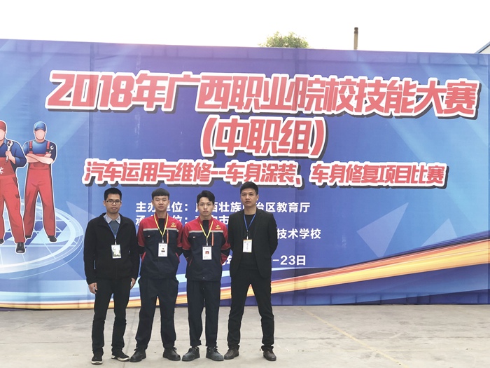 汽車運用與維修專業項(xiàng)目車身塗裝項目(mù)與車身(shēn)修(xiū)複(鈑金)技術項目於(yú)3月22日至23日在南寧第四職(zhí)業技術學校舉行,本次參加汽車噴漆項目(mù)與車身修複項(xiàng)目的共有來自廣西(xī)各個縣、市的(de) 26個代表隊。我院汽車工程係陳銘、馬明傑同學分別參加了汽車塗裝項目與車身修複項目。