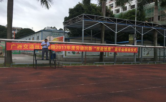 2017年9月25日早(zǎo)上,2017年度(dù)勞動出版“技能雛鷹”獎學金頒獎(jiǎng)儀式在我院足球場隆重舉行。頒獎儀式由我院學生工作科副科長李薑春主持,學院樊海林助理(lǐ)、學生工作科領導、全體班主任以及全校學生出席頒獎儀式。