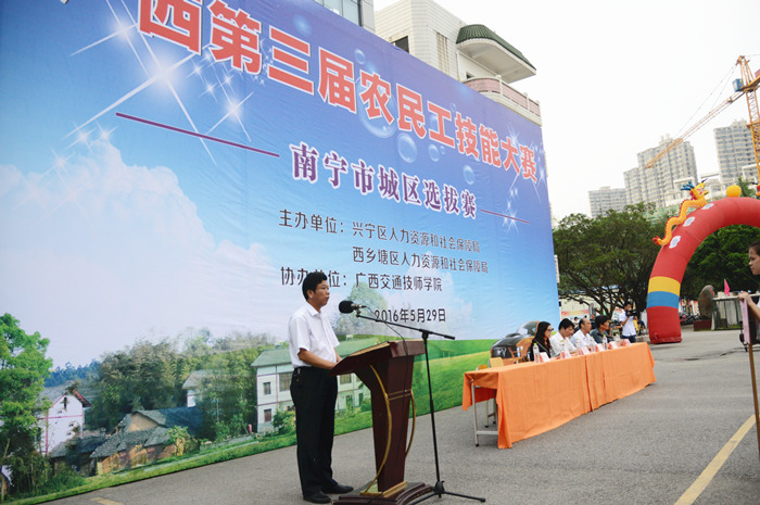 5月29日,由南(nán)寧興寧區、西鄉塘區人力資源和社會保(bǎo)障局主辦,我院協辦的廣西第三屆農民工技(jì)能大賽南寧市選拔賽城區初(chū)賽在我院成功舉行。我院鍾修仁院長、關菲明副院長,興寧區(qū)人力和社會(huì)保障局黃治獻主任、西鄉塘(táng)區人力(lì)和社會(huì)保障局王金全主任(rèn)等出席開幕式。