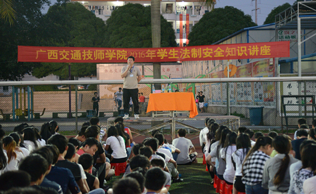 為了營造良好的法製(zhì)教育(yù)環境和氛圍,增強學校推進法製教育的實效性,教育學生養成良好的法(fǎ)製觀念、樹立良好的法律意識,428日晚,我院(yuàn)學生工作處邀請邕武派出所黃(huáng)文力警官到我院開展法製安全知(zhī)識(shí)講(jiǎng)座。