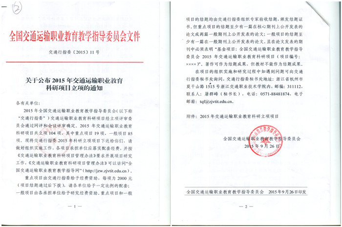 我院4個(gè)項(xiàng)目順利(lì)通過2015年交通運(yùn)輸職(zhí)業教育科研項目立項(xiàng)審批