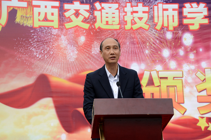 鍾修仁院長為第五屆廣西技(jì)工院校技能大賽我(wǒ)院獲獎教師(shī)宋慶營頒獎(jiǎng)