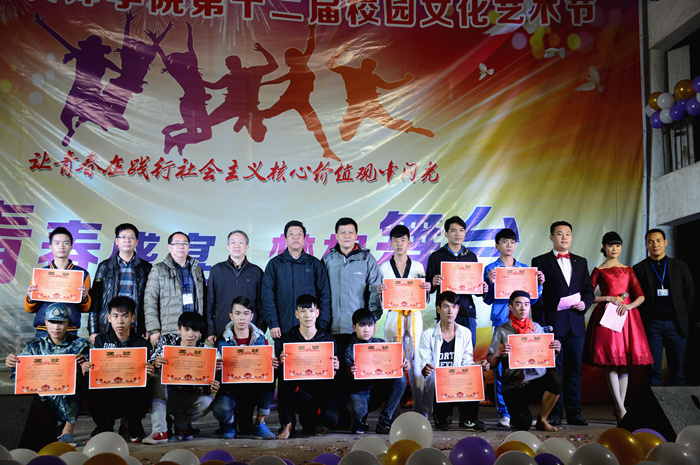 12月29日晚,我院高峰(fēng)校區在校區體育館舉辦第十二屆校(xiào)園文(wén)化(huà)藝術節學生曲藝小品綜合比賽決賽暨元旦(dàn)晚會。院長(zhǎng)鍾修(xiū)仁、副院(yuàn)長關菲明 黨委副書記張(zhāng)健生,院長助理譚勁濤以及相關中層領導等出席,並為獲獎班級頒獎。