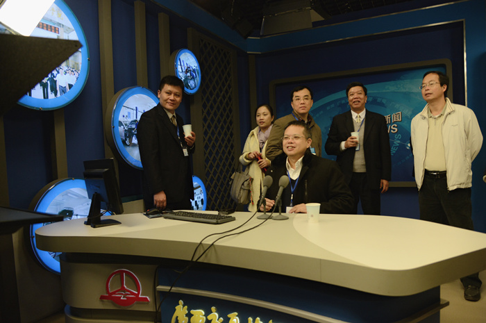 專家組一(yī)行參觀(guān)我校校園電(diàn)視台