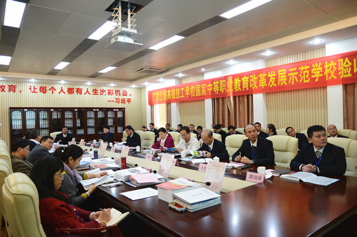 12月19日至20日(rì),國家(jiā)中等職業教育改革發(fā)展示範學校(以(yǐ)下簡稱國家示範(fàn)校)建設終期(qī)驗收專家組一(yī)行6人,在自治區教育廳師(shī)範(fàn)教育處處長李勇(yǒng)齊的帶(dài)領(lǐng)下,到我校進(jìn)行國家示範校終期檢查驗收。