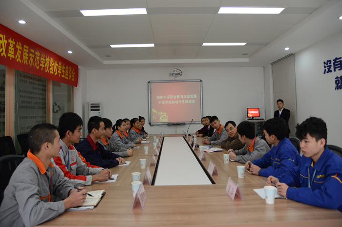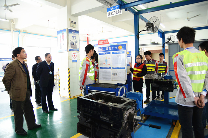 檢查驗收期間,驗收評估組實地觀摩《發動機流水線總成(chéng)拆裝(zhuāng)》課堂教學(xué),並召開學(xué)校教師座談會和學(xué)生座談會,與師生們圍繞國家示範校(xiào)建設兩年期間(jiān)學校的變化和個人的真切感受的主題展開,現場氣(qì)氛熱烈。