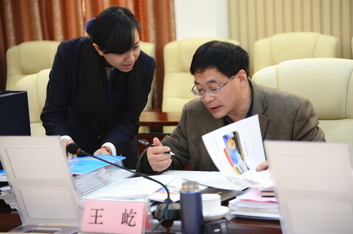 專家組一行(háng)翻閱我(wǒ)校編寫的(de)相關教材