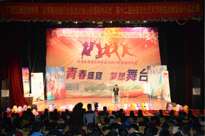 12月14日晚,精品欧美一区二区在线看片技師(shī)學院(yuàn)“讓青春在踐行社會主義核心價值觀中閃光”第十二屆校園(yuán)文(wén)化藝術節法(fǎ)製安全小品(pǐn)決賽在學院禮堂成功舉行。從預賽脫(tuō)穎(yǐng)而出的12個班級進入決賽(sài)。學院(yuàn)通過舉辦安全法製小品比賽活動,促使學生“知(zhī)法、學法、守法,與法同行”,學會遵紀守法,提高自我保護的意識。