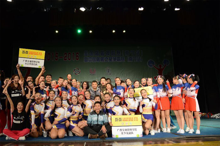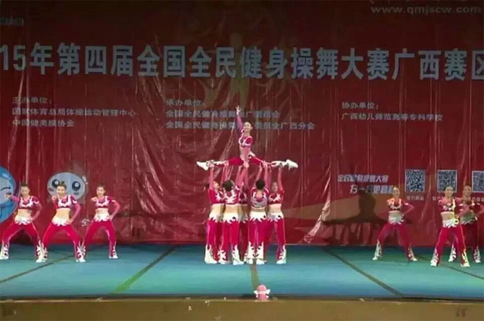 11月28-29日,2015年全(quán)國全民健身操舞大賽廣西賽區與2015年-2016年全國(guó)啦啦操聯賽(sài)的(南寧站)比賽在廣西幼師禮(lǐ)堂圓滿落(luò)幕。學院健美操(cāo)啦啦美少女戰隊、小公舉技巧(qiǎo)隊(duì)、Angel隊在信息與商務係黃振口、甘航(háng)、韋盈盈、周麗麗、劉飛英等(děng)老師的指導帶領下,參加健身操舞及啦啦操規定動作和自選動作比賽(sài)斬獲兩個“一等獎(jiǎng)”,三(sān)個二等獎(jiǎng)的(de)好成績。