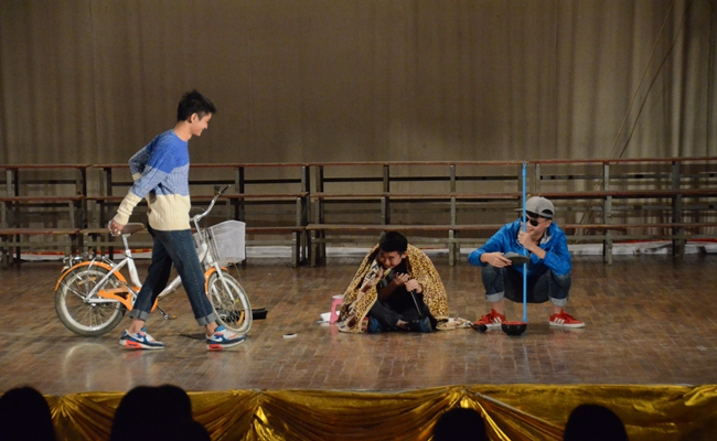 比賽中同學們表演可謂聚古今精髓,演繹眾生百(bǎi)態。參賽節目(mù)內容豐富(fù)多彩,有幽(yōu)默俏皮的誇張故事,有喜聞樂見的日常瑣(suǒ)事,也有多(duō)姿多彩的校園生活。整場比賽(sài)高潮迭起,掌聲不斷,選手(shǒu)們的精彩表演(yǎn)吸(xī)引著全場每一位觀眾的目光。來自15檢高8班小品《小心陷阱(jǐng)》更以高超演(yǎn)技,幽(yōu)默的語言,將現場氣(qì)氛推向高潮。