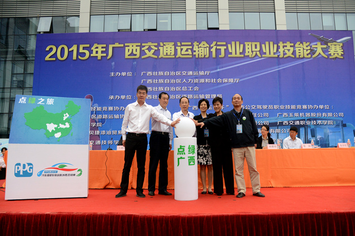 開幕式上,中國海員建設工會全國委(wěi)員會公路(lù)運輸部部長謝觀宇表示,當前我國正處(chù)在全麵(miàn)建成小康社會的關鍵期,全麵深化改革、加快轉變經濟發展方式的攻堅期。創新驅動、轉型升級、加(jiā)快轉變經濟(jì)發展方式不僅需要有新動力和技能(néng)人才,更需要一支高素質、本領(lǐng)強、技術精(jīng)的職工隊伍。黨的十八大提出了推動綠色發展、循(xún)環發展、低碳發展的理念。交通運輸部等十部委《關於促進汽車維修行業轉型升級、提升服務質量的指導(dǎo)意見》中提出(chū)了“推廣綠色維修作業、促進行業持續發展”的要求,綠色發展以及成為維修行業的新趨勢,綠(lǜ)色交通是交通運輸部黨組為了更好實現交通運輸科學發展、服務好“兩個百年”目標所提出的當前和今後一個時期,建(jiàn)立“四個交通”任務的重要環節。汽車維修行業作為關(guān)係(xì)人民群眾切(qiē)身利益的重要行業,綠色發展(zhǎn)、健康發展、持續發展離不開(kāi)大量(liàng)的高技能(néng)人才。本次(cì)大賽是交通運輸行業首次對車身塗裝的單列競賽,並全程使用環保綠色的水性(xìng)色漆和低揮發性有(yǒu)機化合物高固塗料作(zuò)為比賽用漆的國家(jiā)級一級(jí)賽事。舉辦廣西選拔(bá)賽給廣大汽車維修職工又一次提供(gòng)了施展才能、崗位成才的廣(guǎng)闊平台,旨在培養熟練(liàn)應用新技(jì)術、新(xīn)工藝核心科技的專業噴塗人才,從而普及汽車(chē)維修行業的綠色作業。