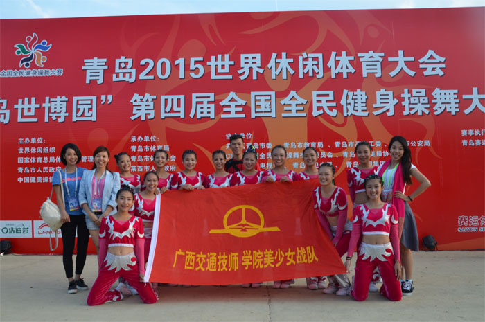 比賽中(zhōng),我院“美少女戰隊”啦啦操隊發揚了努力拚搏、刻苦訓練的頑強作風,動作完成得規範到位。這是我院啦啦操隊(duì)首次參加國(guó)家級的健身操舞比賽,即取得了出色成績,在高中組別(bié)中的規定動作“有氧舞蹈五級”、自(zì)編動作“輕器械健身操”兩個項目(mù)斬獲一等獎,為學(xué)校爭得了榮譽。本次比賽的指導(dǎo)老師(shī)劉飛英、黃振口、周麗(lì)麗、韋盈盈也獲得了(le)“年度優秀教練員”稱號。