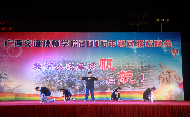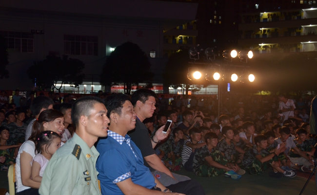 9月10日晚,我院2015年警民聯歡晚(wǎn)會在學院足球場舉辦。學院鍾修仁院(yuàn)長(zhǎng)出(chū)席晚(wǎn)會(huì)並致詞(cí),廣西武警總隊直屬支隊隊長覃振周、學生工作處領導、各班班主(zhǔ)任及教官、2015級新生們觀看晚會。
