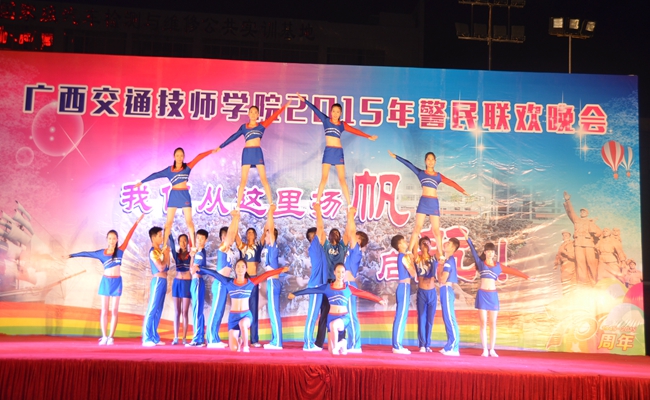 晚會在動感十足的啦啦操花球表演中拉開了帷幕(mù),街舞協會活力四射的《快樂汽車人》、教(jiāo)官代表帶來的獨唱《軍中綠花》,2015級幼兒教育2班歡快活(huó)潑的舞蹈《快樂女孩》、汽車商務協會優美的舞蹈《青花(huā)瓷》、長堽(gāng)校區街舞協(xié)會熱情(qíng)奔放的《起源》、舞蹈協會帶來的《恰似(sì)白月光》、許曉清老師帶來的動聽的歌曲《晚風吹過哨塔》等節目逐一登(dēng)場,為師生們呈現一場精彩的晚會 。最(zuì)後,啦啦操協會帶來了技巧表演,嫻(xián)熟的(de)動作(zuò),炫目的技巧,再次將晚會推向了高潮,贏(yíng)得了觀眾們(men)雷鳴般的掌聲。