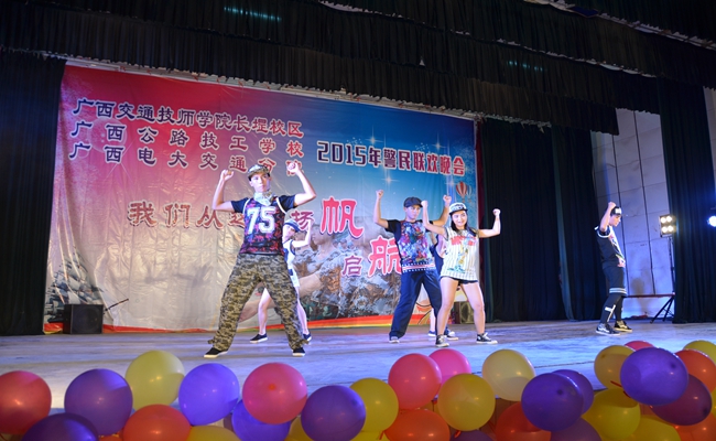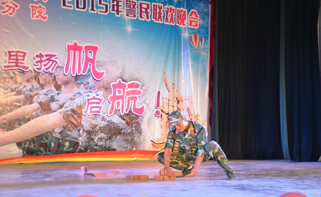 晚(wǎn)會上,我院學生社團的同學們精心編排了節目,教官代表們也帶來了精彩的演出。啦啦操、武術、街舞、舞蹈、現場書法、技巧表演等豐富多彩的文藝節目輪番(fān)上(shàng)演,將晚會氣氛一次次推向高潮。教官帶來的武術(shù)表演和徒手劈磚,贏(yíng)得了台下(xià)觀眾的陣陣(zhèn)掌聲;啦啦操的《大眼睛》和街舞協會帶來的精彩舞蹈《起源》,掀起晚會的小高潮;教師代表謝少林老師(shī)帶來的現場書法,充分展現了多才多藝的教師(shī)風采(cǎi)。近一個半小時的演出,精彩紛呈,亮點不斷,為同學們呈現了一場視覺盛宴。