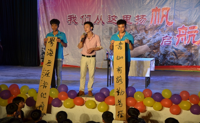 為豐富學生軍訓活動,9月9日晚我院長堽校區(qū)在禮堂隆重舉辦了(le)2015年長(zhǎng)堽(gāng)校區警(jǐng)民聯歡晚會(huì),學院院長(zhǎng)鍾修仁出席(xí)晚會並(bìng)致 詞(cí),學院黨委副(fù)書記張(zhāng)健生、廣西武警總隊(duì)直屬支隊(duì)隊長(zhǎng)覃振(zhèn)周、長(zhǎng)堽校區部(bù)分領導及班主任、2015級新生(shēng)觀看了晚會(huì)。