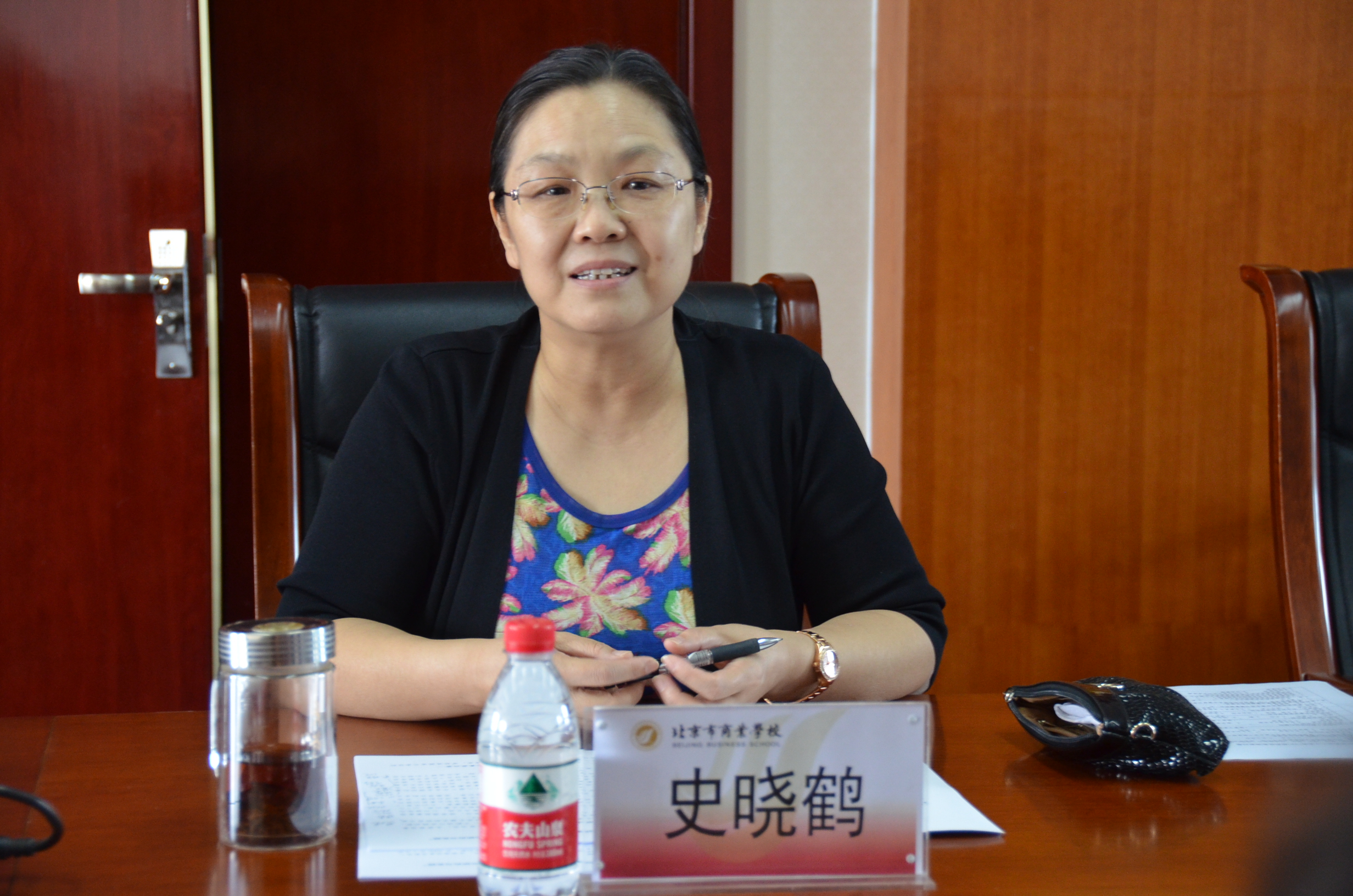 課題組(zǔ)在史曉鶴書記陪同(tóng)下參觀北京商業學校文化建設成果展室