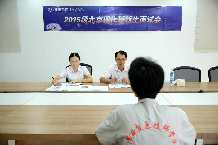 上午緊張的麵試剛剛結束,下午(wǔ)2點,一(yī)場(chǎng)別開生麵的(de)2014級北京現(xiàn)代班校(xiào)園專場招聘(pìn)會在(zài)德技(jì)樓拉開帷幕。