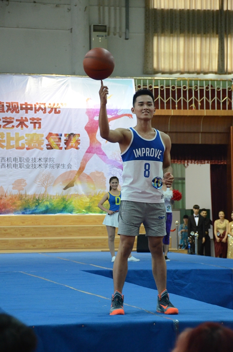 覃冰(bīng)同學進(jìn)行花樣(yàng)籃球秀(xiù)