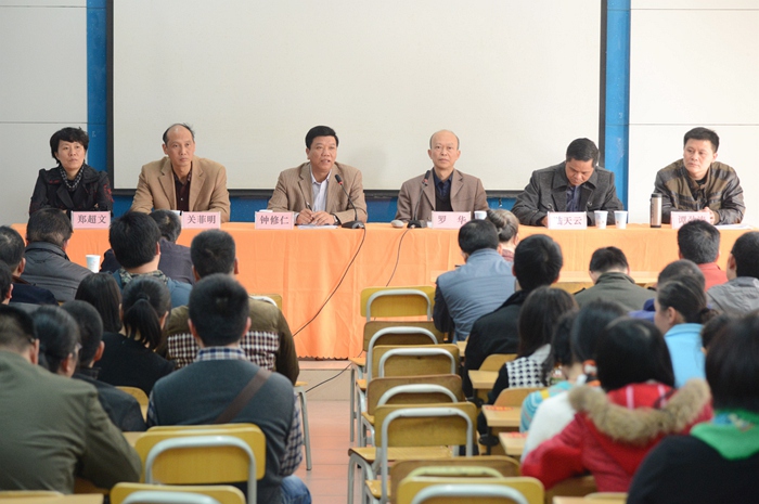 會上,鍾修仁院長首先作(zuò)了廣(guǎng)西交通技師學院2014年度工作報告。鍾(zhōng)修仁院長在報(bào)告中回顧了我院過去一年在教務教學、招生就業、基礎設施改造(zào)、短期培(péi)訓、內部管理、黨建等各(gè)項工作的具體情況。全麵總結了2014年學(xué)院發展所取得的成績,深入分(fèn)析並指(zhǐ)出了存在的問(wèn)題和困難,並對2015年全院的各項工作進行了部署。鍾院長希望全體教職員工在新的一年裏,繼續發揚務實、創新、團結、拚搏的(de)頑強作風,克難(nán)攻堅(jiān),奮發有為,圓滿完成2015年的各項目標任務,努力推進學院實現新突破新跨越。
