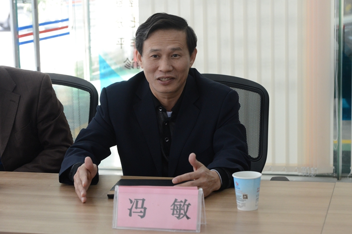海南海(hǎi)汽運輸集團(tuán)黨委書記文永飛(右二),海南高(gāo)級技工學校校長馮敏(左二)一行六(liù)人到我院參觀交流