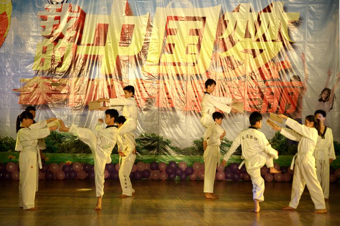 歡送會上,學生會、社團聯合會的成員們為現(xiàn)場觀呈現了精彩的演出。音樂協會(huì)的歌曲《突(tū)然好想你》串燒加入了流行元素,開場便點燃了現(xiàn)場的氣氛;舞蹈協會的《B-Boy》、《舞(wǔ)動》 以及《繡球女》等優美舞蹈,展現了學生們的青春活力;跆拳道協會特技表演《跆拳風》、搏(bó)擊協會的搏擊(jī)操《擒敵拳》剛勁有力(lì),展示了紮實的武術功底;乒乓球協會、排球協會以及羽毛球協會共同表演(yǎn)的小(xiǎo)品《碰瓷》,令全場觀眾不時(shí)拍手叫好,將現場氣氛推向了高潮。