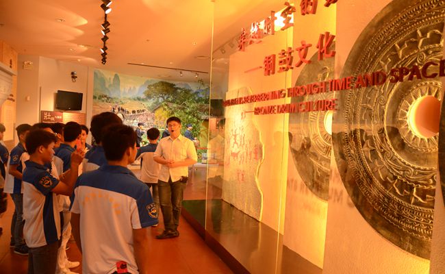 團幹們跟隨解說員了(le)解廣西的銅鼓文化(huà)