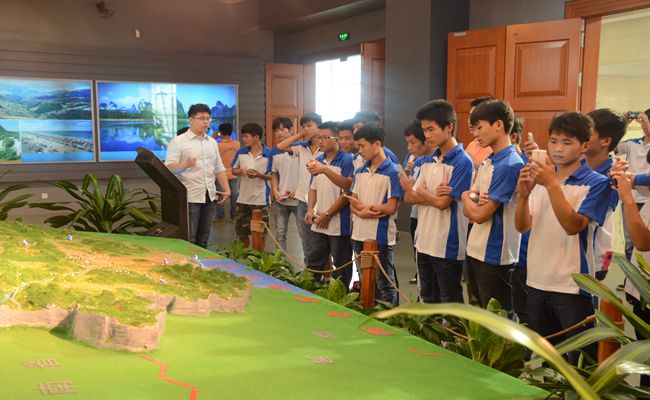 解說(shuō)員在給團幹們介紹(shào)廣西地貌