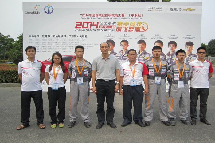 此(cǐ)次參(cān)賽由我院交(jiāo)通工程係副主(zhǔ)任梁振華領隊領隊,我院12電高2班蒙堅傑(汽(qì)車維修基(jī)本技能項目),12塗裝班林劍波(汽車塗裝項目),11電高3班陳暉邦(汽車空調項目)三位選手參賽,三個項目的指導老師劉小強、羅(luó)宗(zōng)港、潘利丹也隨隊前往。關菲明副院長在參加全國交通運輸(shū)職業教育教學(xué)指導委員會(簡稱行指委)2014年工作會議結束後,立即從江蘇鎮江趕(gǎn)到比(bǐ)賽現場為參賽選手指導(dǎo)、加油。