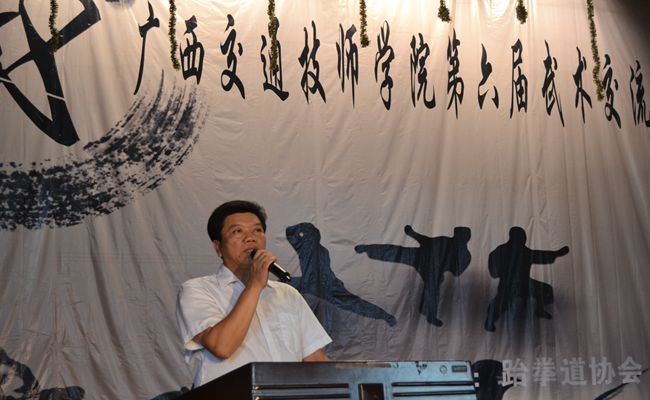 6月14日上午9點,我院第六屆“以武會(huì)友,傳(chuán)承武(wǔ)德”武術交流會在學院禮堂隆重舉行。此次(cì)武術交流會由學院團委主(zhǔ)辦,跆拳道協會、搏擊協會、散打協會(huì)承辦,邀請(qǐng)了廣(guǎng)西財經學院、廣西中醫藥大學(xué)、南寧商貿學院(yuàn)、廣西中醫藥大(dà)學賽思斯學院、廣西水利電(diàn)力職(zhí)業技術學院與廣西醫科(kē)大學(xué)在內的25家(jiā)兄弟院校武術協會(huì)以及俊傑道館參加,學院鍾修仁副院長(zhǎng)出席並致辭。