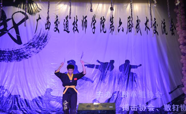 在交流會上(shàng),我院跆(tái)拳道(dào)協會、搏擊協會向兄弟院校展示了我們的訓練(liàn)成果,廣西(xī)財經學院、廣西中醫藥(yào)大學、南寧商貿學院、廣西中醫(yī)藥大學賽思斯學院、廣西水利電力職業技術學院與廣西醫科大學等院校也帶來了他們的展示節目。跆(tái)拳道、散打、武術、搏擊,太極輪流展示,雙截棍、拂塵、太極劍輪番上陣,贏得了現場觀眾的陣陣掌聲。俊(jun4)傑道館的小朋(péng)友(yǒu)們(men)精彩的跆拳道表(biǎo)演,更是讓觀眾們(men)讚不絕口。