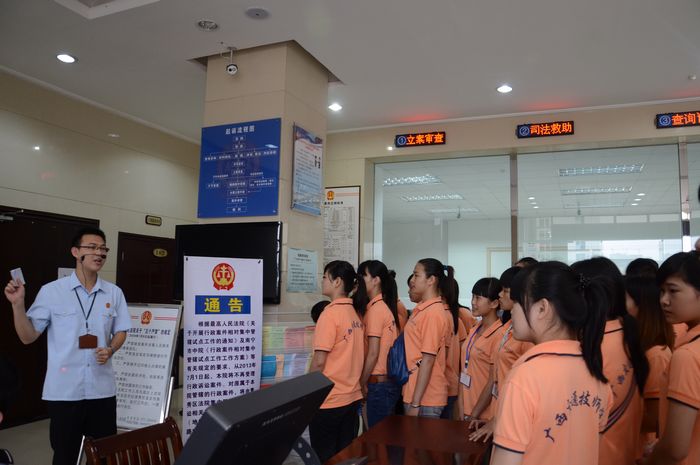法院工作人員首先引(yǐn)導學員參觀了訴訟服務大廳等法製教(jiāo)育場所,並對法院曆史發展沿革、廉政文化建設、法製建設等(děng)進行了講解,為接下來的庭審做好了知識準備。
